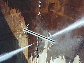 高壓水鐵路罐車(chē)自動(dòng)化清洗系統(tǒng)采用超高壓3D三維容器清洗器,可以實(shí)現(xiàn)封閉容器的全方位掃描清洗,運(yùn)行多個(gè)周期后,罐內(nèi)清洗沒(méi)有死角。再配以“升降開(kāi)合”機(jī)構(gòu),可以近距離完成罐內(nèi)高壓清洗,罐內(nèi)疏松銹蝕全部可以清理掉,緊密層的銹蝕也可以清理掉96%以上,清洗后的罐至少5~10天不返銹。[查看詳情]