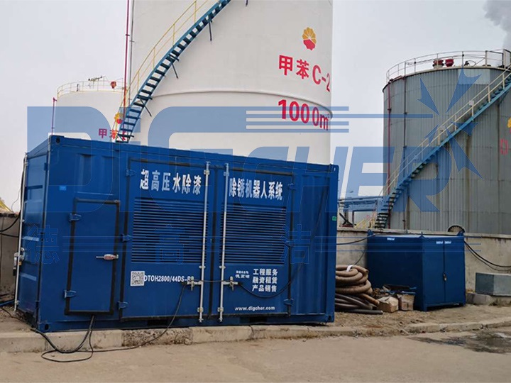 化學脫漆劑脫漆和高壓水除銹工藝是較安全的儲罐除銹方式。化學脫漆劑脫漆,優點是效果好、脫漆徹底,無靜電或火花;缺點是單獨使用時流平不會,漆面的平整度不好,使用成本高、施工進度慢。高壓水除銹工藝優點是處理效率高,效果好,成本低;缺點是不防銹,廢水處理需考慮。