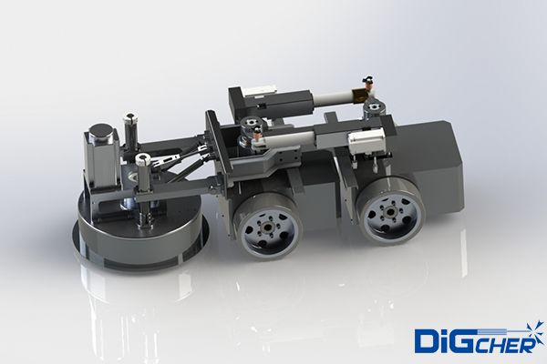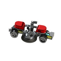 機器人采用四輪驅動,負載能力強,可在在垂直面及天花板面任意行走;電機驅動,具有穩定可靠的立面吸附措施;機器人前端的毛刷盤負責清理和回收模板表面的粉塵和殘渣。