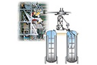 將三維自動旋轉(zhuǎn)噴頭伸縮機構(gòu)安裝在反應(yīng)釜入孔上,伸縮桿伸進反應(yīng)釜內(nèi),伸縮機構(gòu)可采用手動、電動、液壓等控制,使伸縮桿在反應(yīng)釜內(nèi)伸縮和沿反應(yīng)釜內(nèi)壁周圍方向移動,伸縮桿在移動中可以避開反應(yīng)釜內(nèi)的障礙物。根據(jù)具體實際情況可選用2孔或4孔三維自動旋轉(zhuǎn)噴頭,當三維自動旋轉(zhuǎn)噴頭水平旋轉(zhuǎn)時,水射流形成的旋轉(zhuǎn)力矩帶動噴嘴在垂直面內(nèi)旋轉(zhuǎn)。由于三維旋轉(zhuǎn)噴頭與伸縮桿的復(fù)合運動,高壓水射流可以覆蓋反應(yīng)釜內(nèi)任何位置,從而完成反應(yīng)釜的清洗。